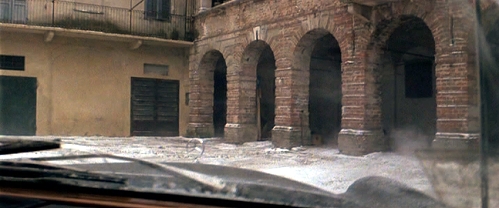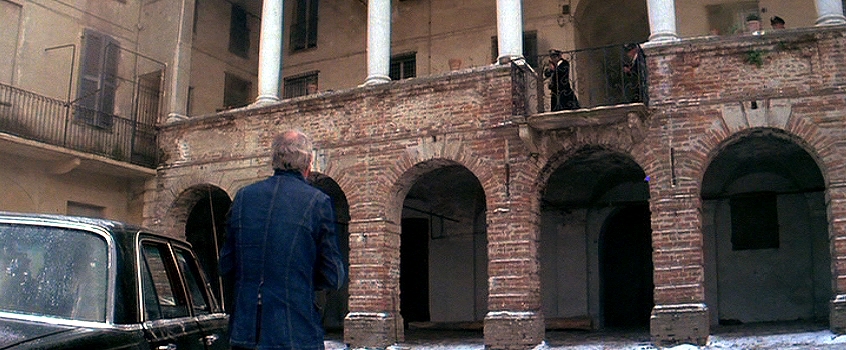 The car chase ends in a beautiful patio in Casalmaggiore (Italy).