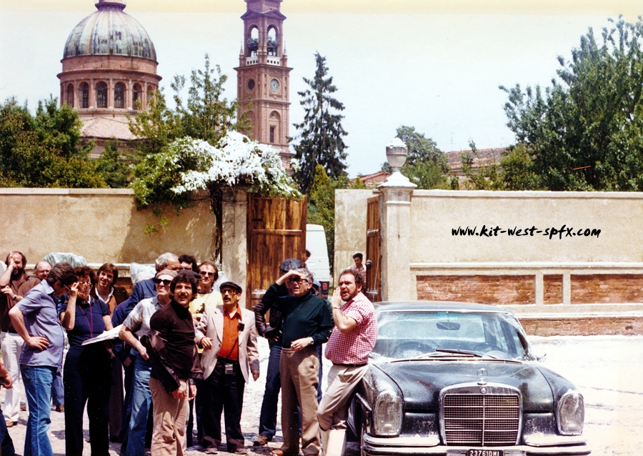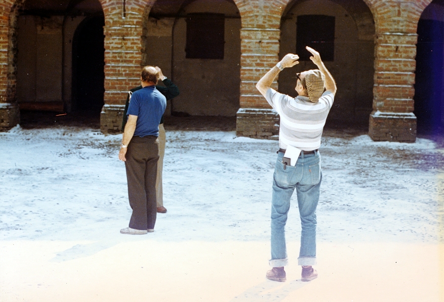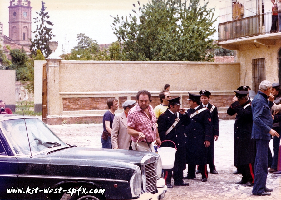On Set in Casalmaggiore (patio). The spring in Italy is warm, may 1978.