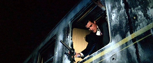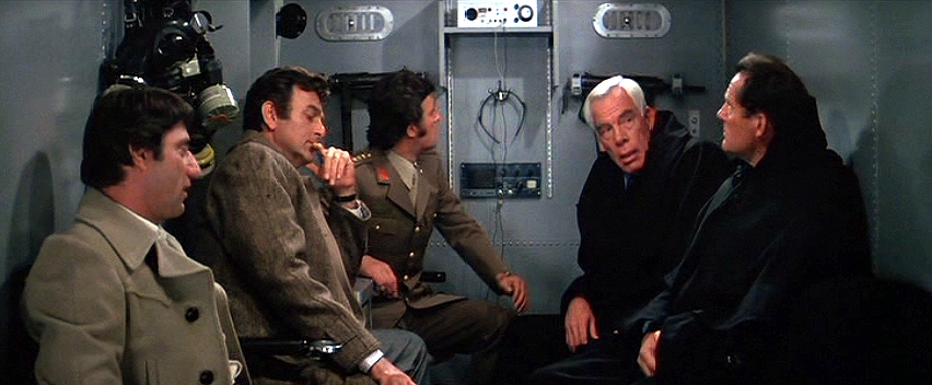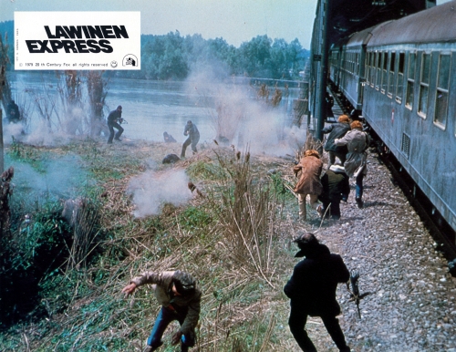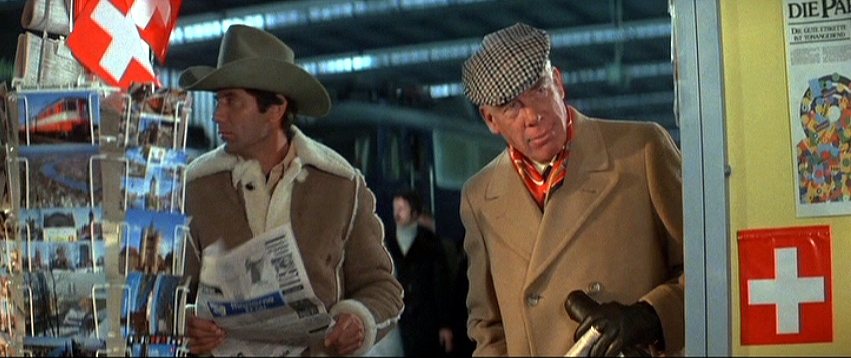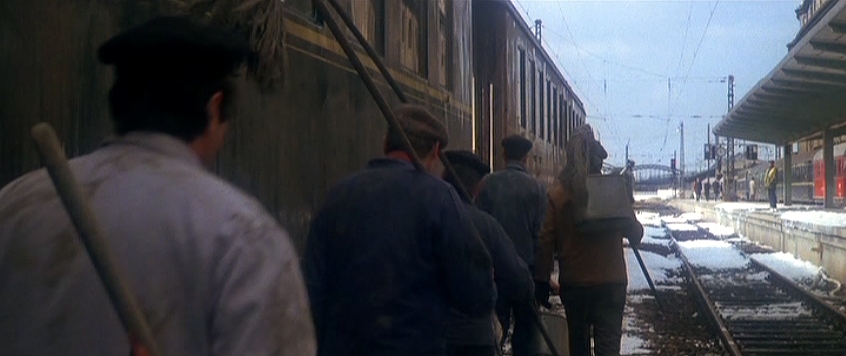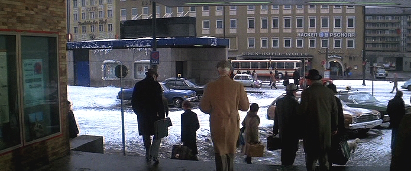 Wargrave (Lee Marvin) leaves the Munich station. Everywhere is 'Expyrol-snow'.