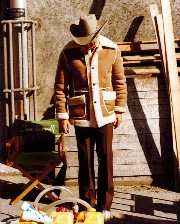 The crew on the Casalmaggiore bridge filming the Joe Namath/stuntman scene