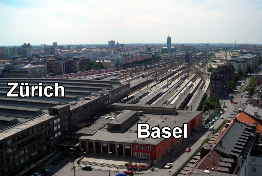 Comparison photo of Munich central station. The location for 'Zürich' and 'Basel'.