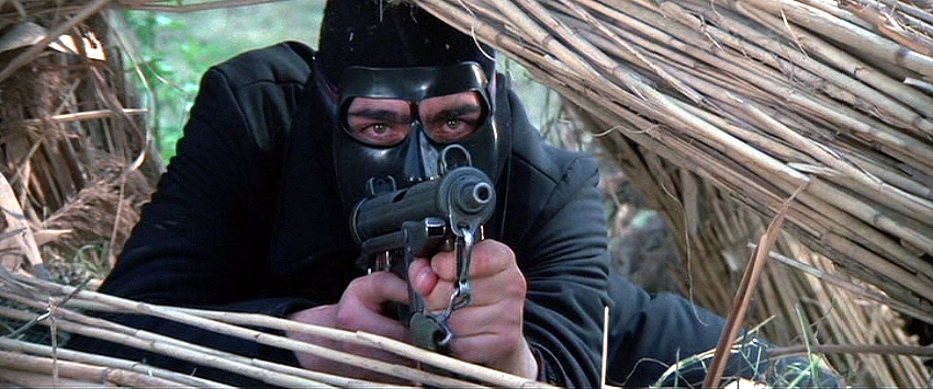 The guys wearing the outfits of the dead Geiger group...and chase after Bunin.