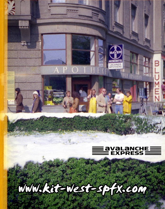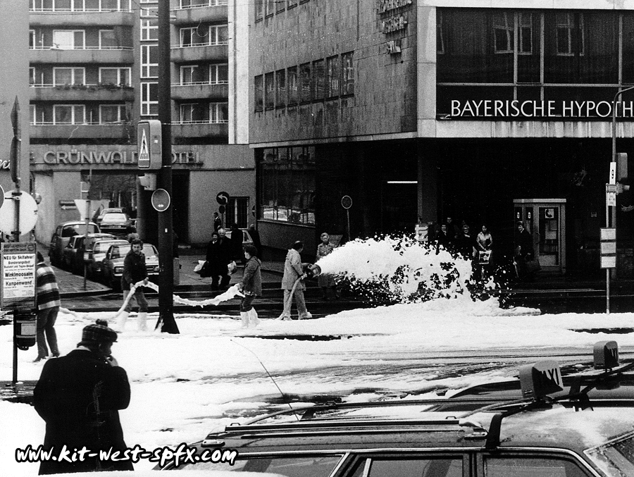 The SPFX Dept is snowing up the Arnulf Street (near 'Pfeffer' street). April 1978.