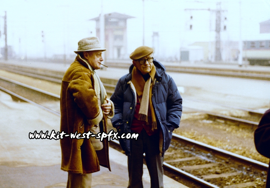 Kit West (SPFX) talking with publicist Vic Heutschy (right) - Munich Station.