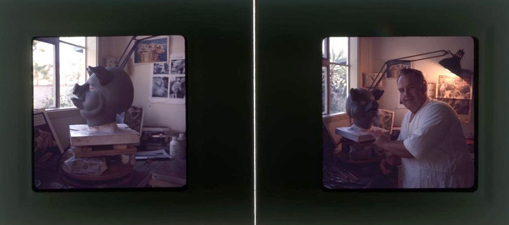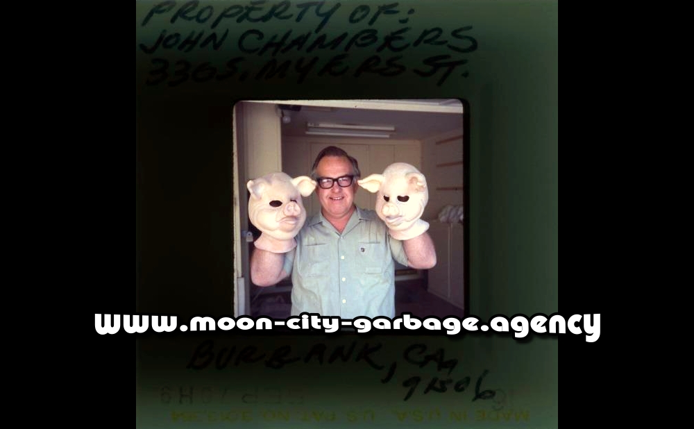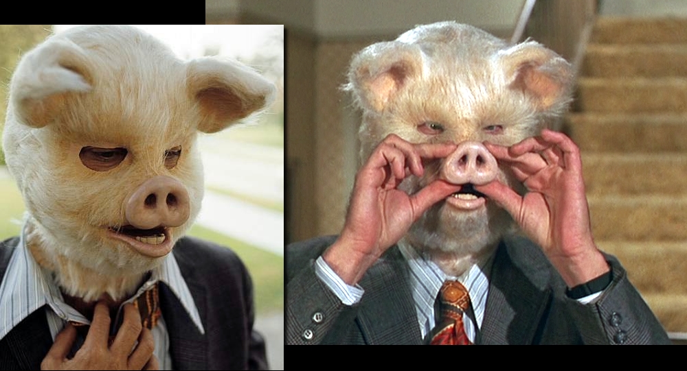 In the early 70s Johnny Chambers fashioned a cartoonish Pig Mask for actor Dick Sargent in his fully equipped Garage Shop.