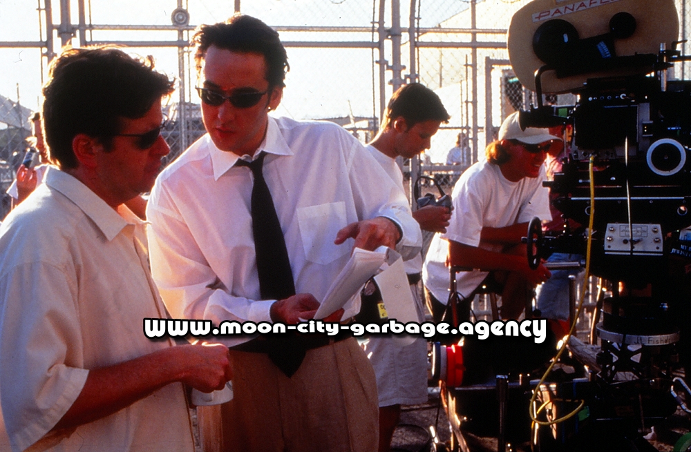 John Cusack talks with Director Simon West about the next scene, 1996.