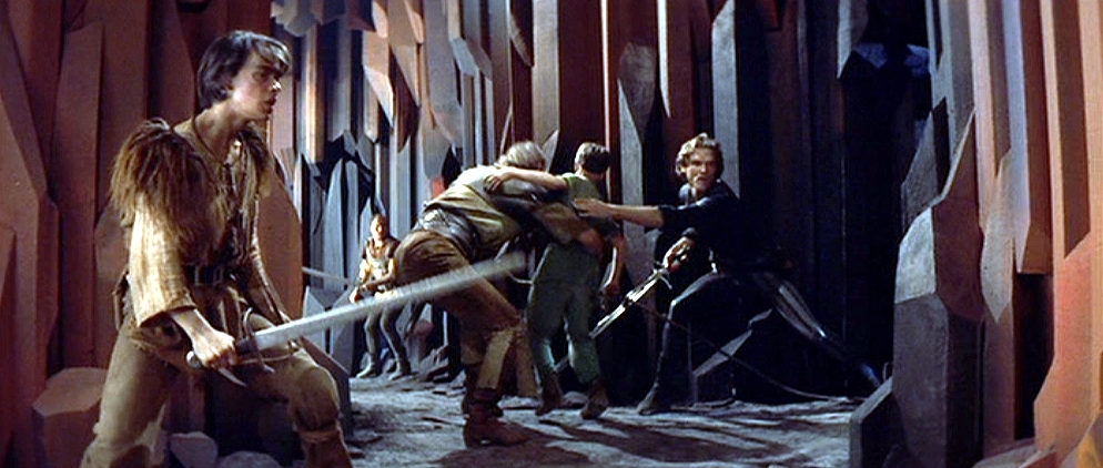 Colwyn used the Glaive to free Lyssa. Derek Meddings designed the 5-blade sword (The Glaive).