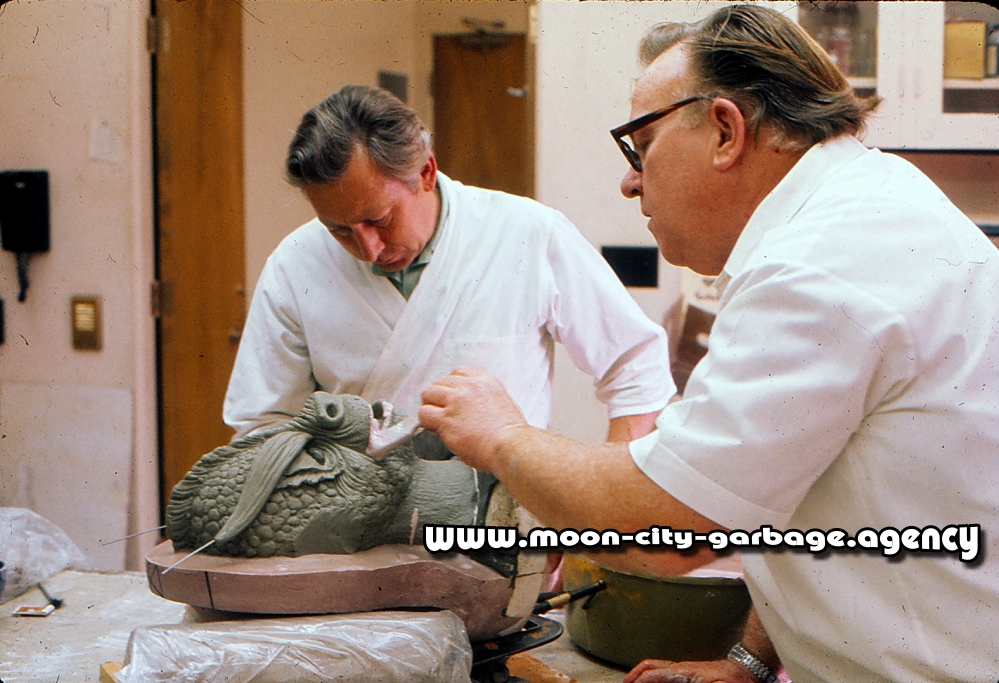 John Chambers, Janos Prohaska and Robert Prohaska in the Universal makeup kitchen, 1971.