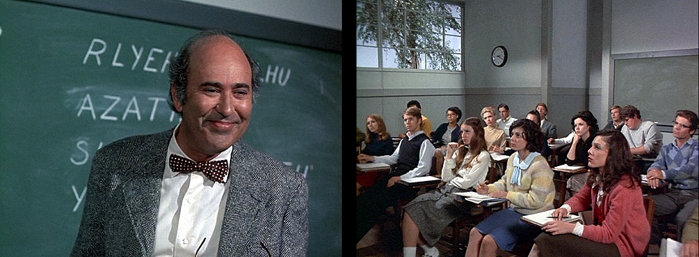 Professor Peabody, intensively played by Carl Reiner, is teaching his students about ancient pagan religions,
