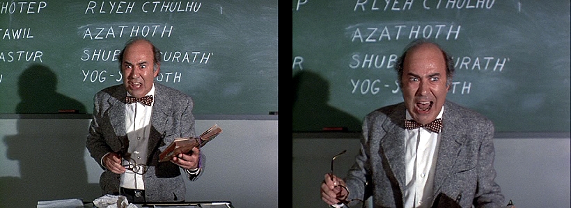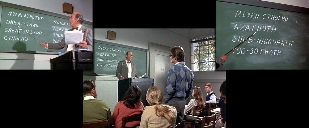 Another student, Mr. Lovecraft (of course!), asks him about a book, the Necronomicon.