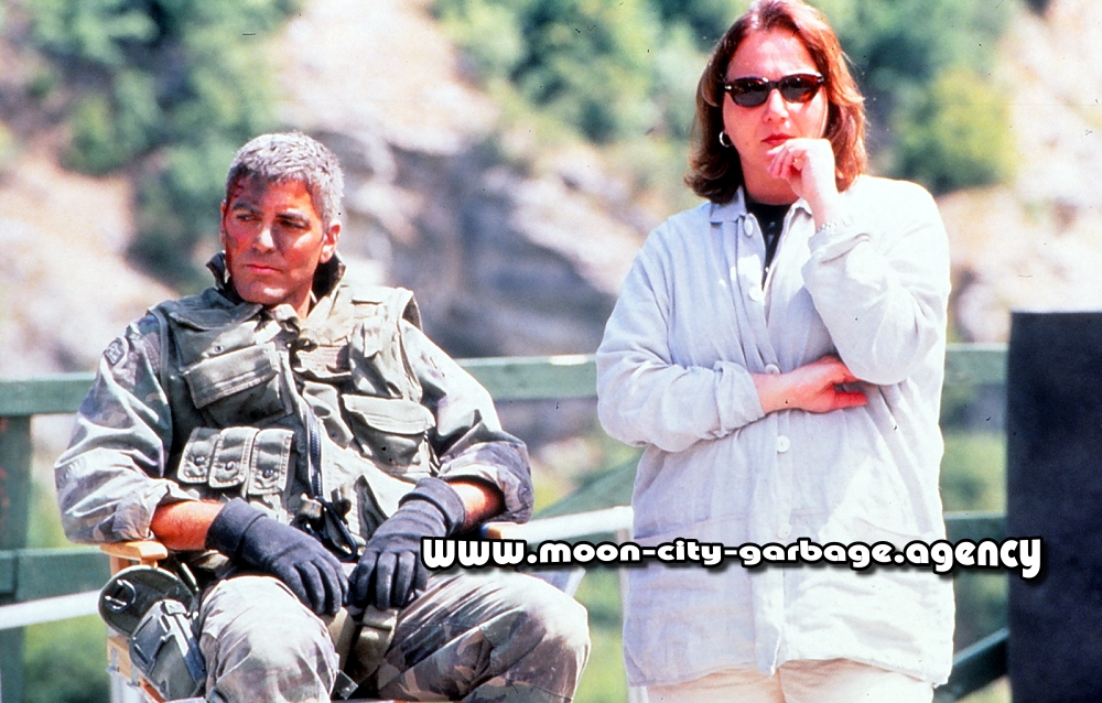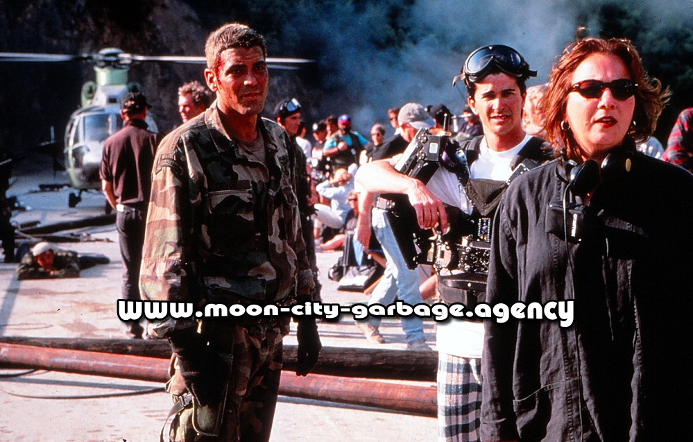 George Clooney and Director Mimi Leder on Set in Macedonia, 1996.