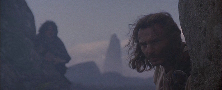 Rob Roy (Liam Neeson) walks alone in the camp of the thieves.
